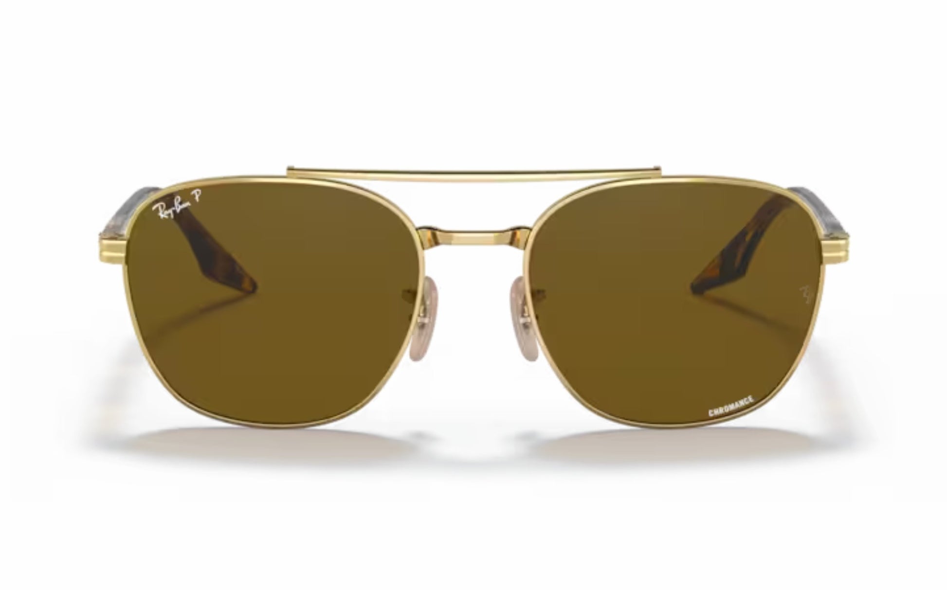 Features in gold metal frame paired with stylish brown glass lenses.