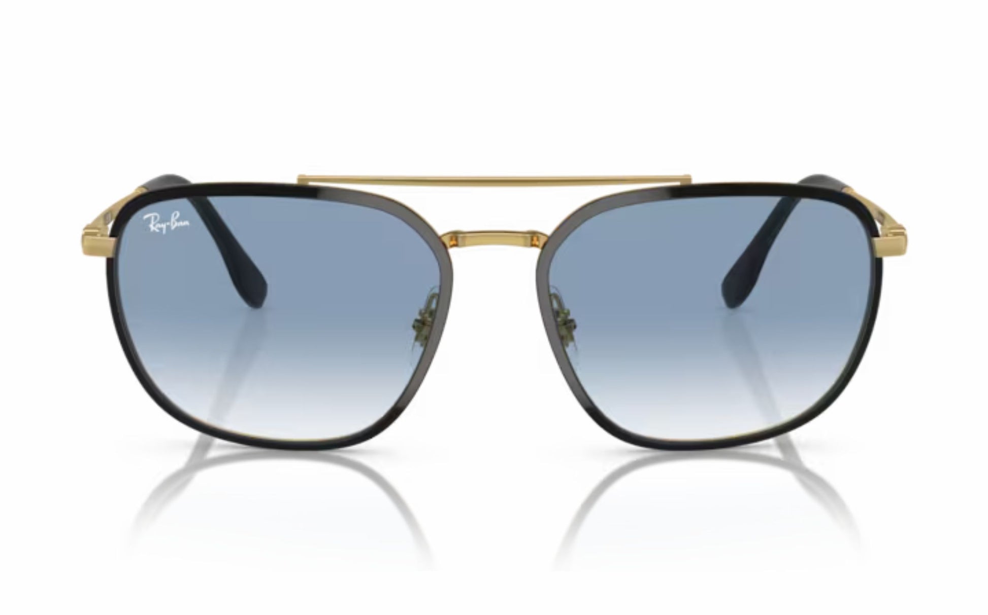 Features in black and gold metal frame paired with stylish blue glass lenses.