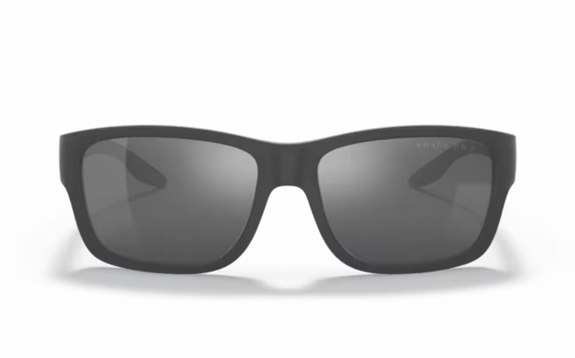 Men’s Prada Sunglasses, Model PS 01WS UFK-07H with a modern square design, featuring an elegant gray plastic frame and polarized gray lenses that provide high clarity and perfect protection from the sun. Available in 59 mm size, making it ideal for larger faces, combining elegance with practicality.