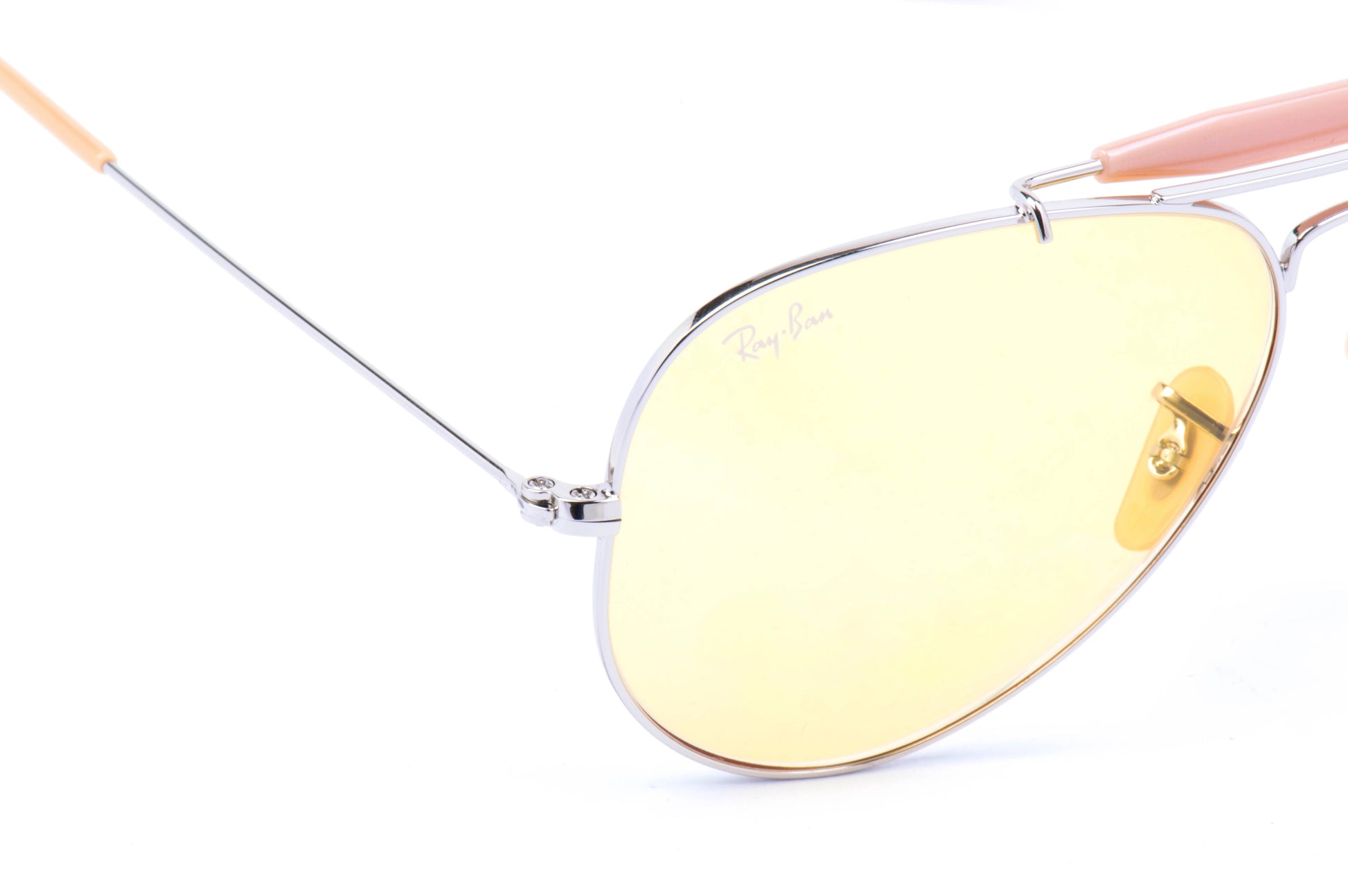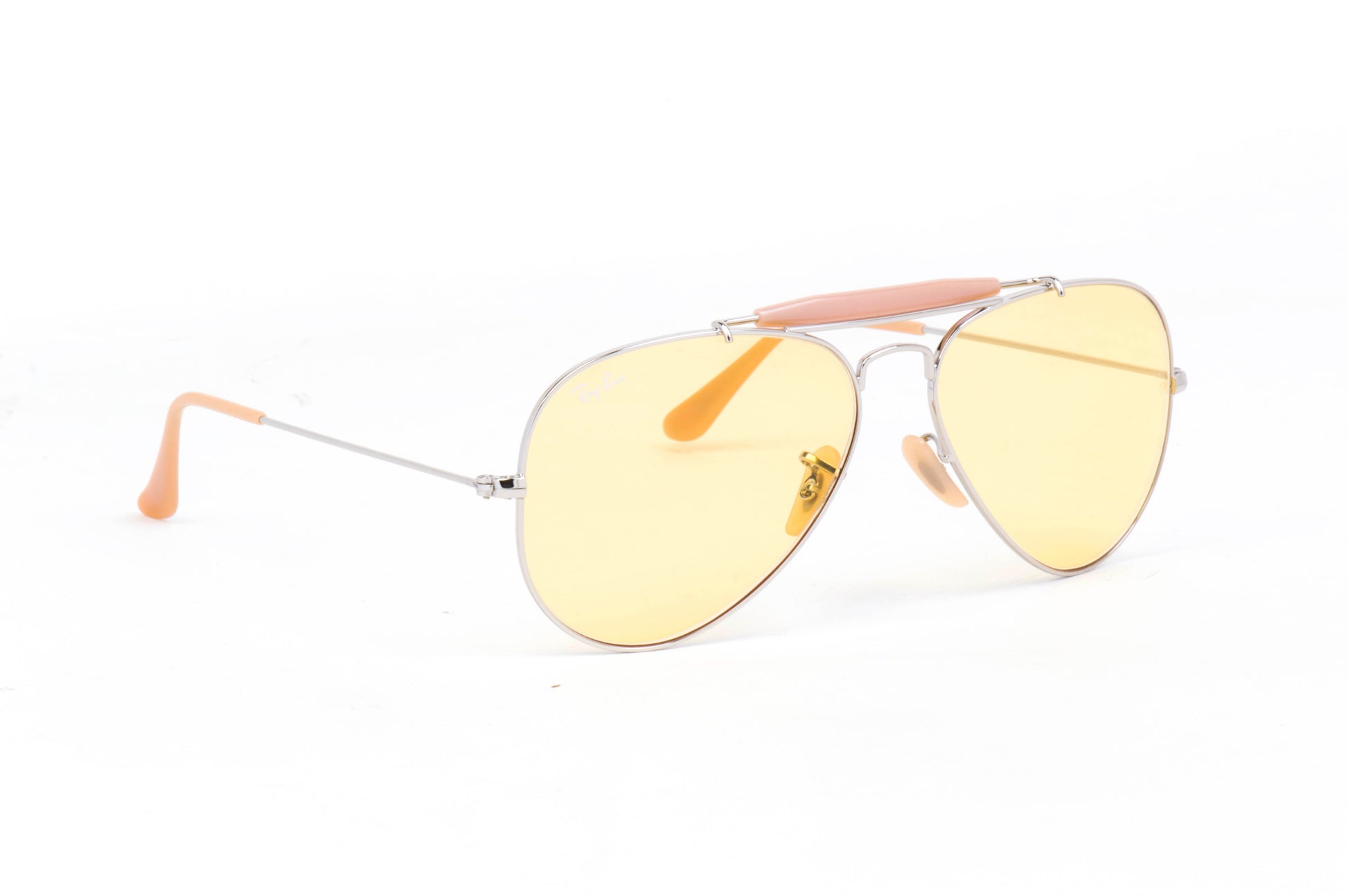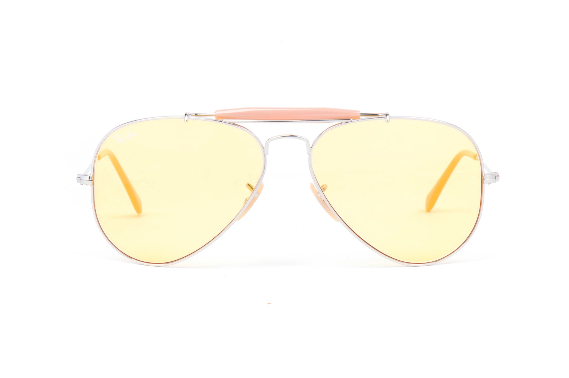 Features in silver metal frame paired with stylish yellow glass lenses.