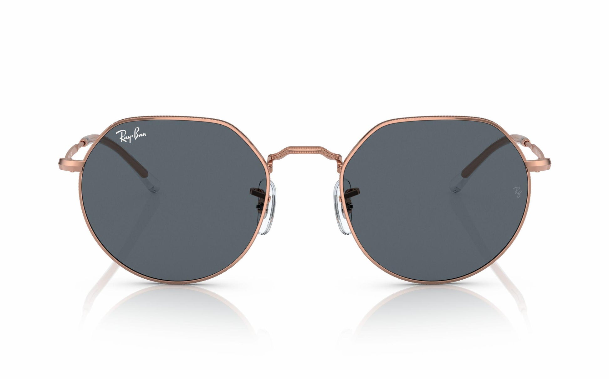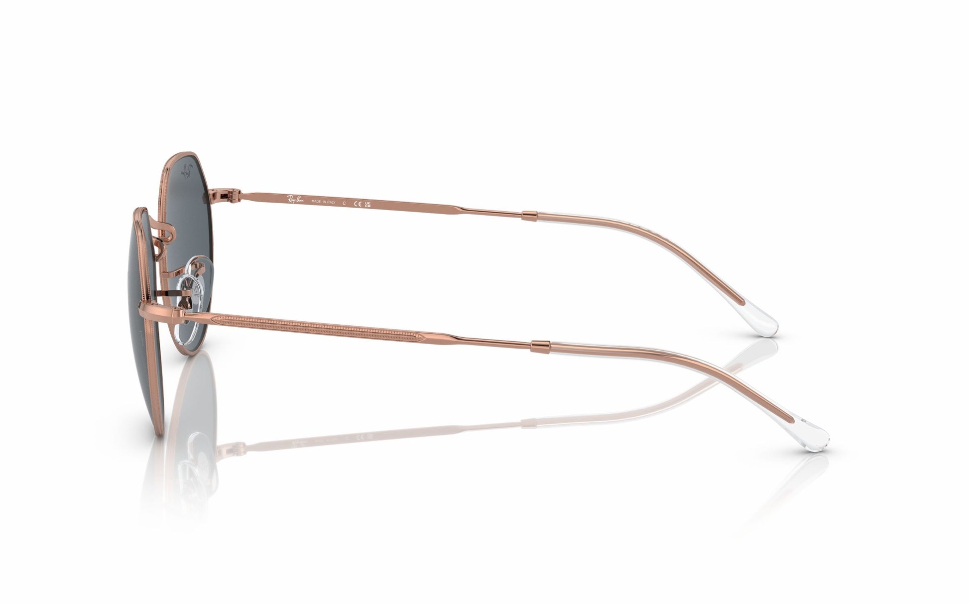 Features in rose gold metal frame paired with stylish blue glass lenses.