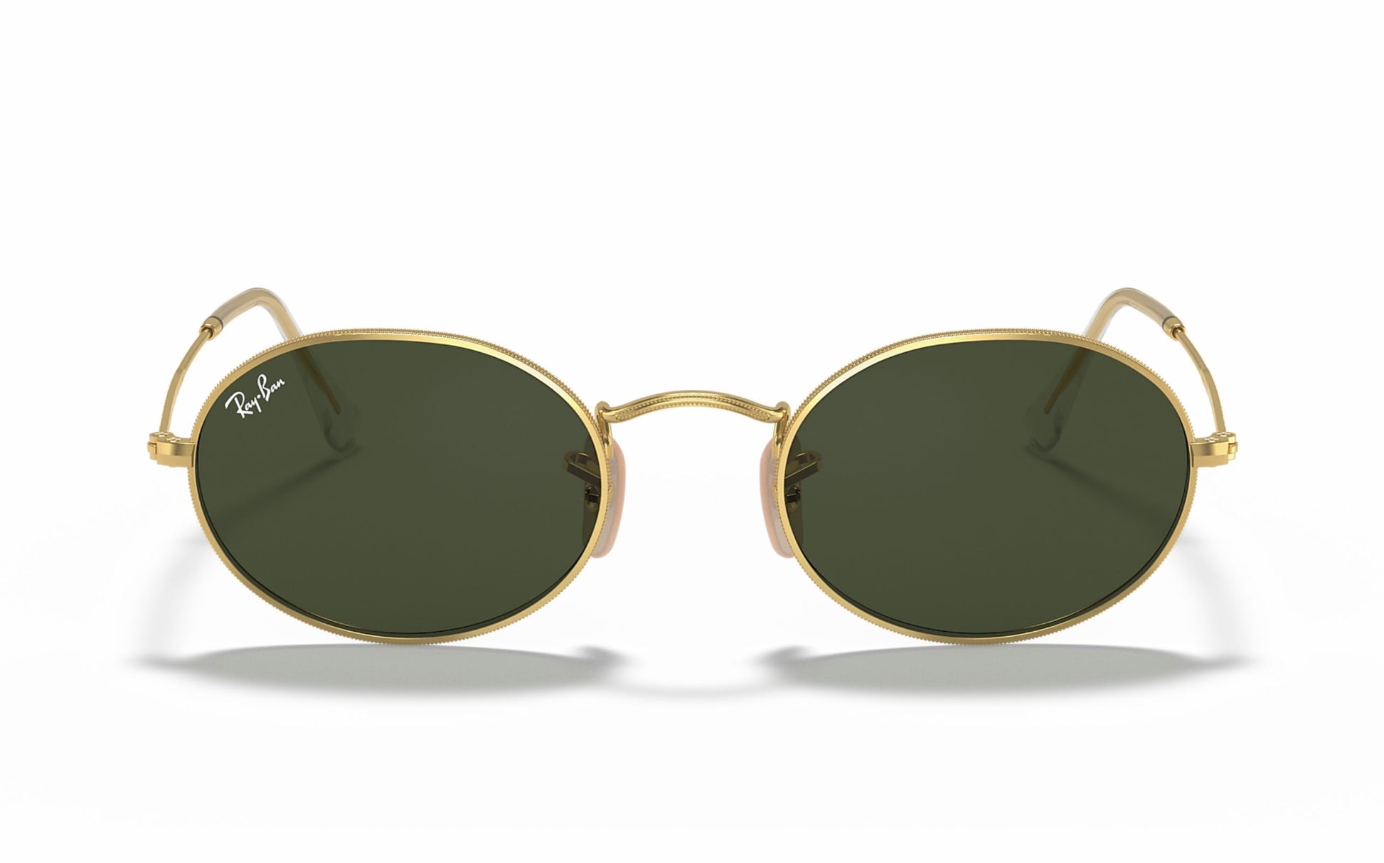 Features in gold metal frame paired with stylish green glass lenses.